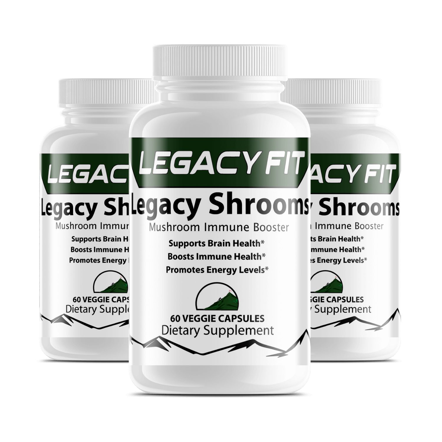 Legacy Shrooms is formulated to support immune health, antioxidant activity, balanced estrogen levels, antiviral support, antibacterial, reduced stress, improved exercise performance, and blood sugar regulation.